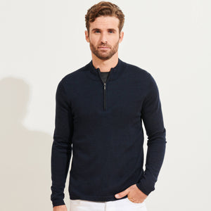 Patrick Assaraf 14GG Xfine Merino 1/4 Zip Mock - Midnight Mouline