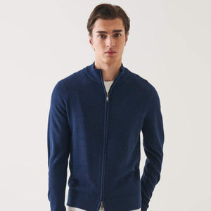 Patrick Assaraf Xfine Merino Seed Stitch Full ZIP Mock Cardigan - Cosmos Blue