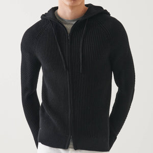 Patrick Assaraf 7GG Xfine Merino Textured ZIP Hoodie - Black