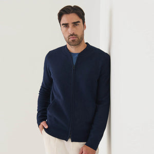 Patrick Assaraf Xfine Merino Textured Full ZIP - Mid Night