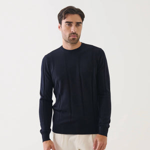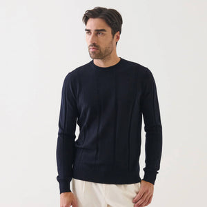 Patrick Assaraf Xfine Merino Drop Needle Crew Sweater - Mid Night