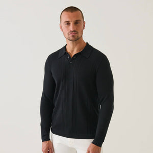 Patrick Assaraf 7GG Xfine Merino Textured 1/4 ZIP Mock - Black