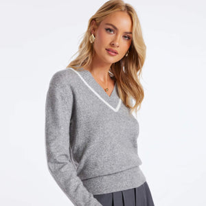 The Siene Sweater is a cold-weather go-to, a foundational wardrobe piece. Featuring a V-neck with contrast stitching and a relaxed fit, this is a timeless layer that pairs well with anything and everything.